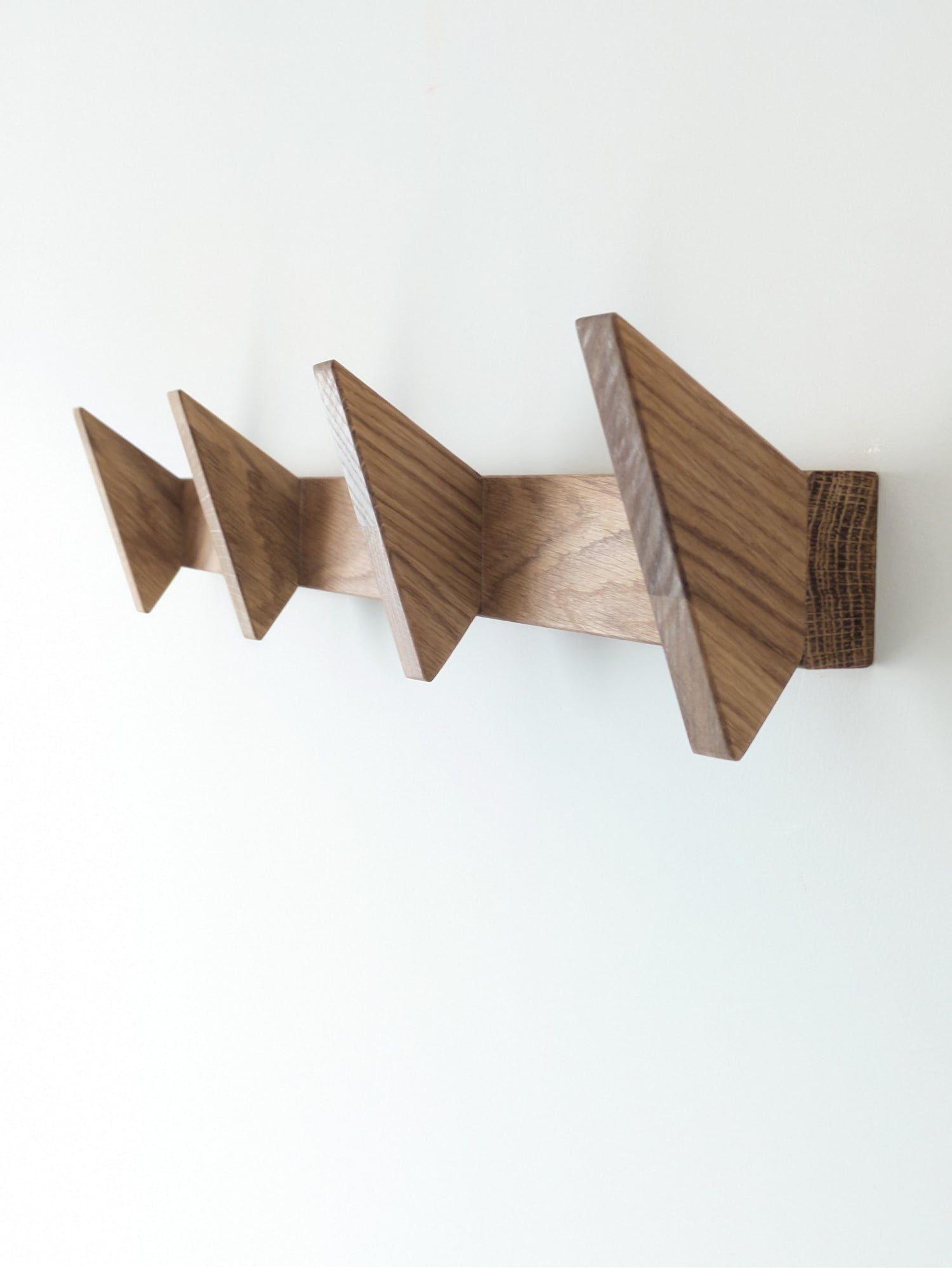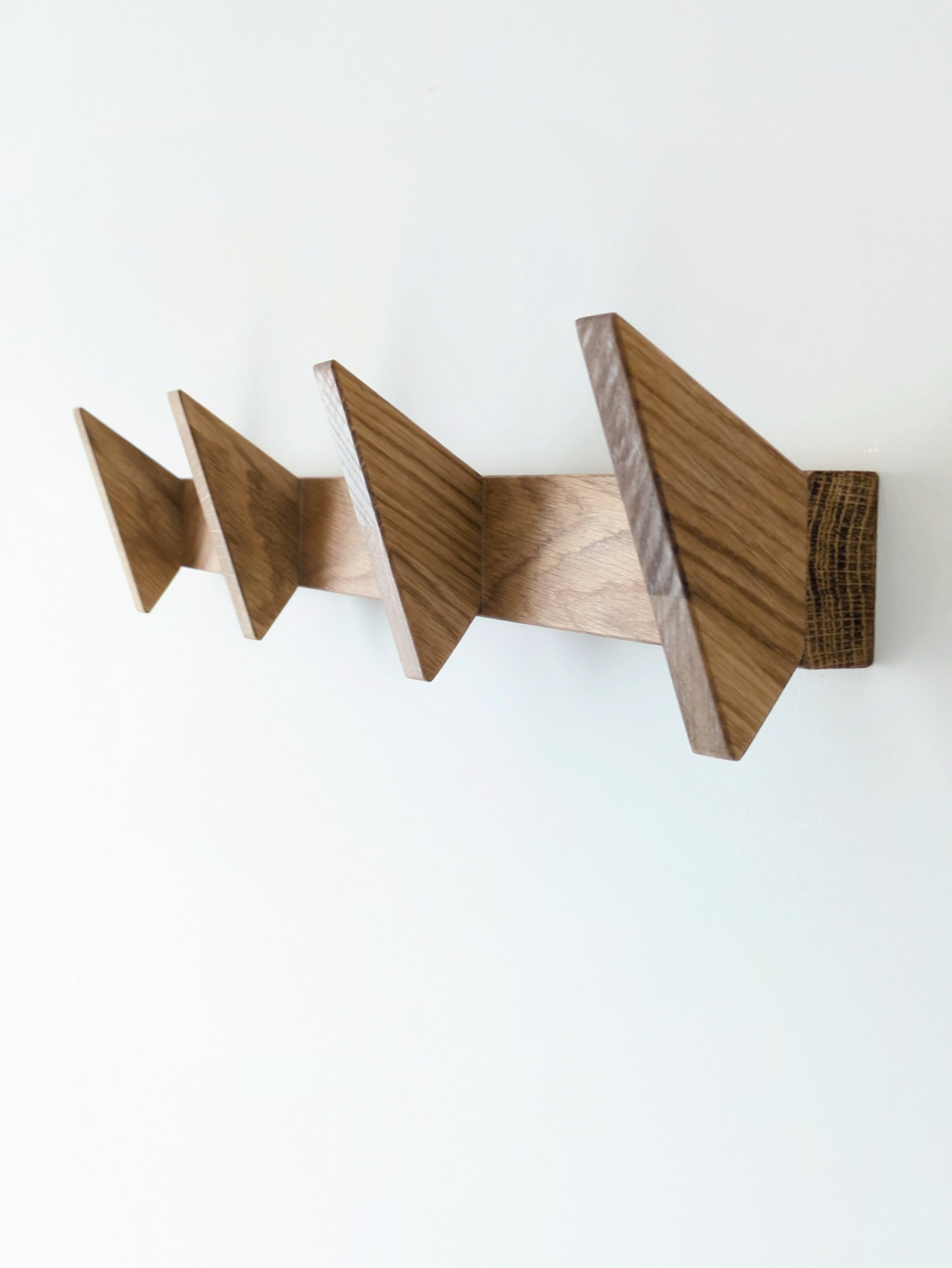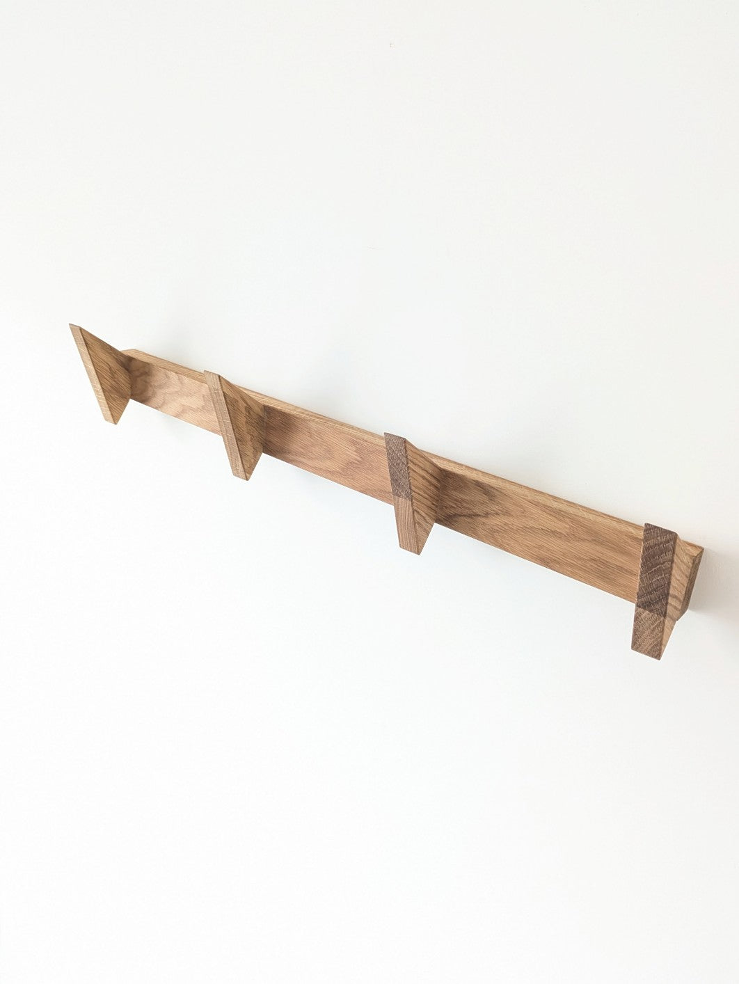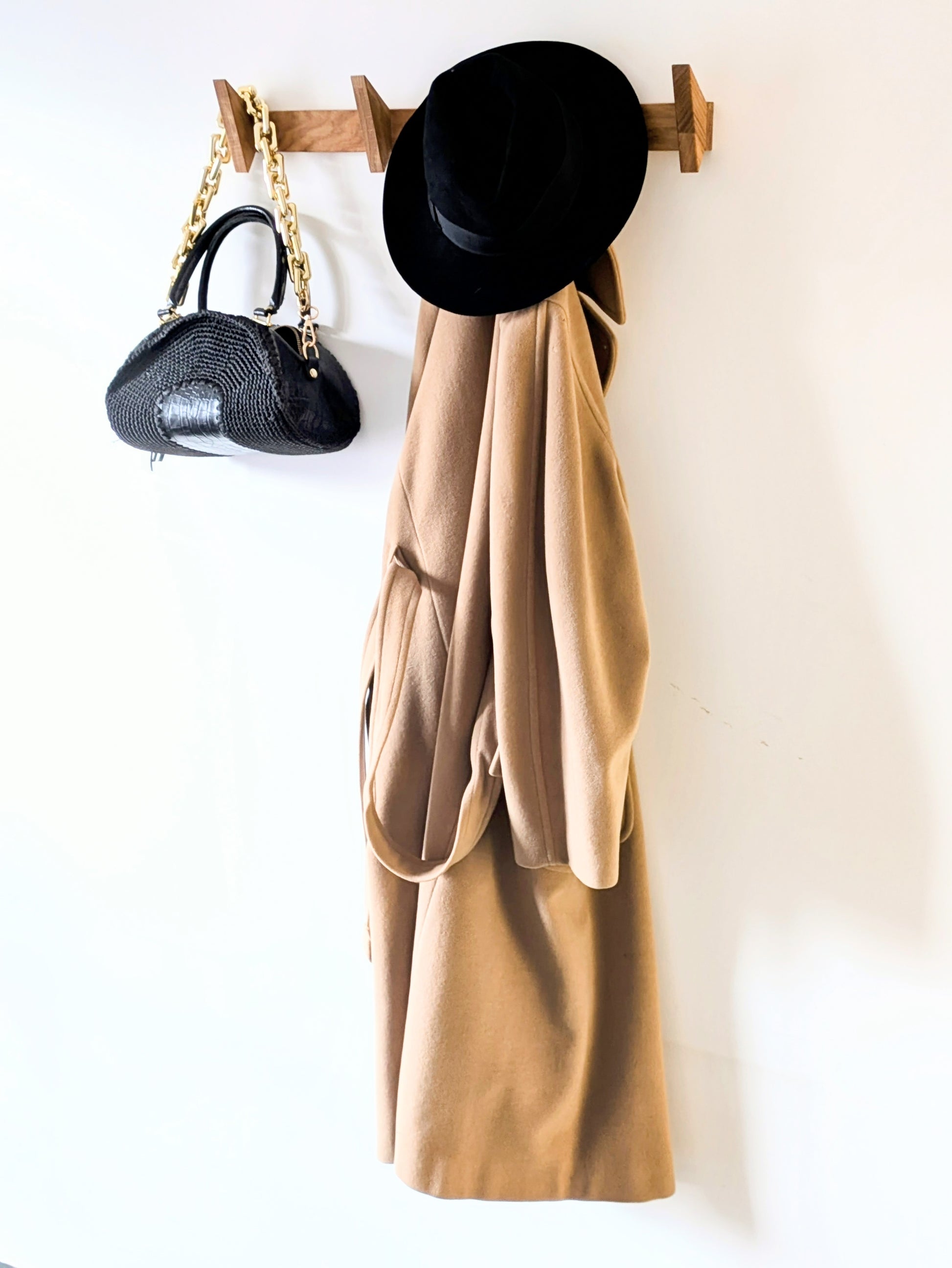 Questo appendiabiti da parete in legno unisce funzionalità e design minimal, portando ordine e stile agli spazi della casa.