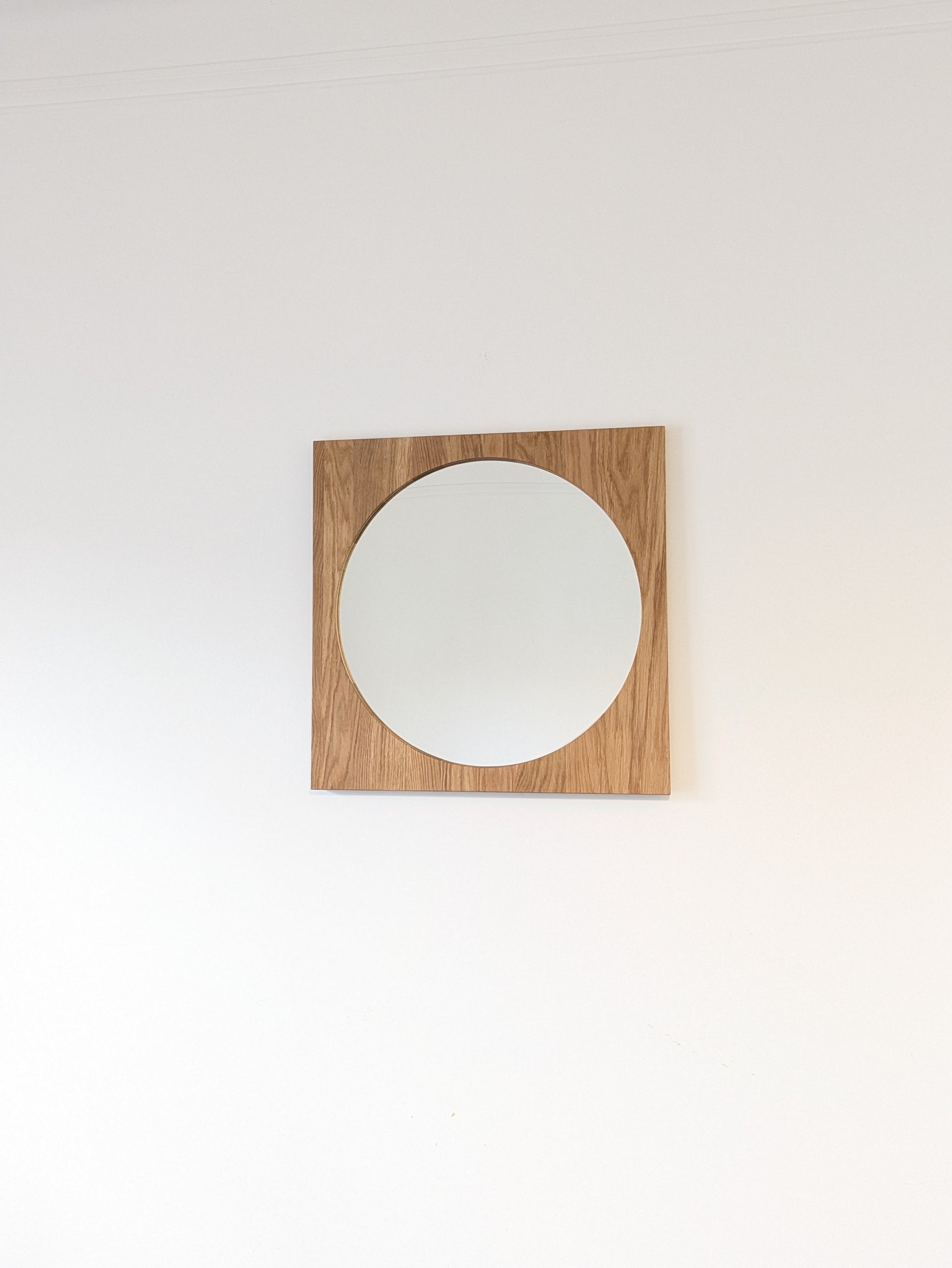 Realizzato in rovere naturale, ogni specchio presenta venature uniche che raccontano la materia.