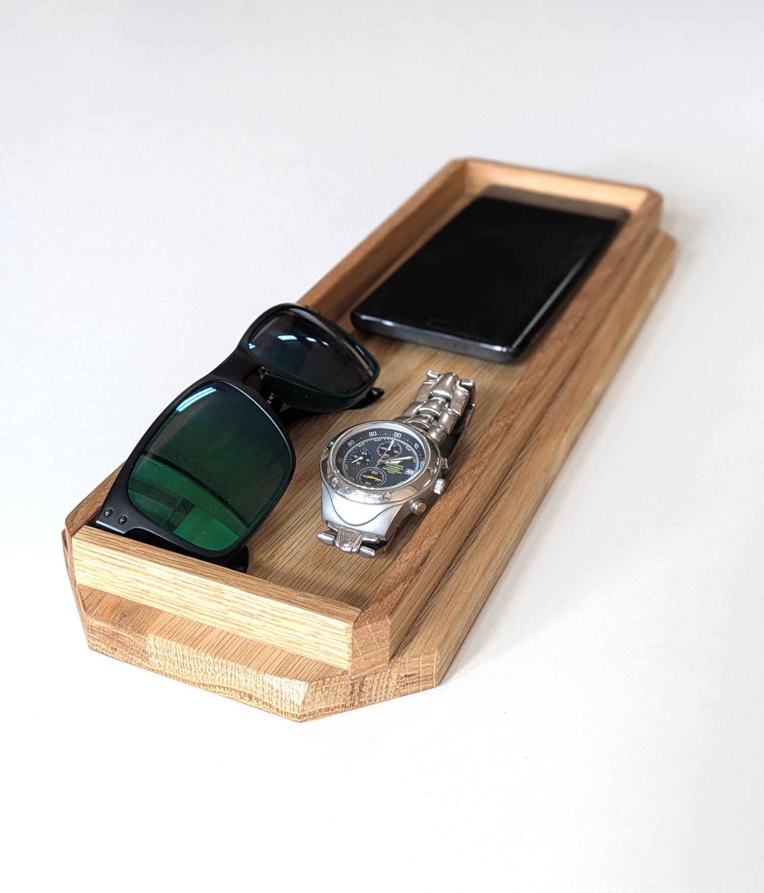 Perfetto per chiavi, telefono, orologio o occhiali, mantiene lo spazio ordinato trasformando piccoli oggetti in una composizione pulita e armoniosa.